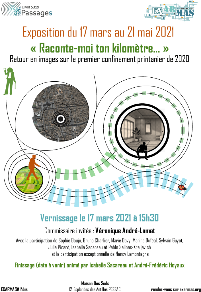 Pour sa quatorzième exposition EXARMAS vous propose une exposition à partir d’un appel à création « Raconte-moi ton kilomètre » : pour une redécouverte sensible de nos espaces de grande proximité par temps de confinement [printemps 2020].