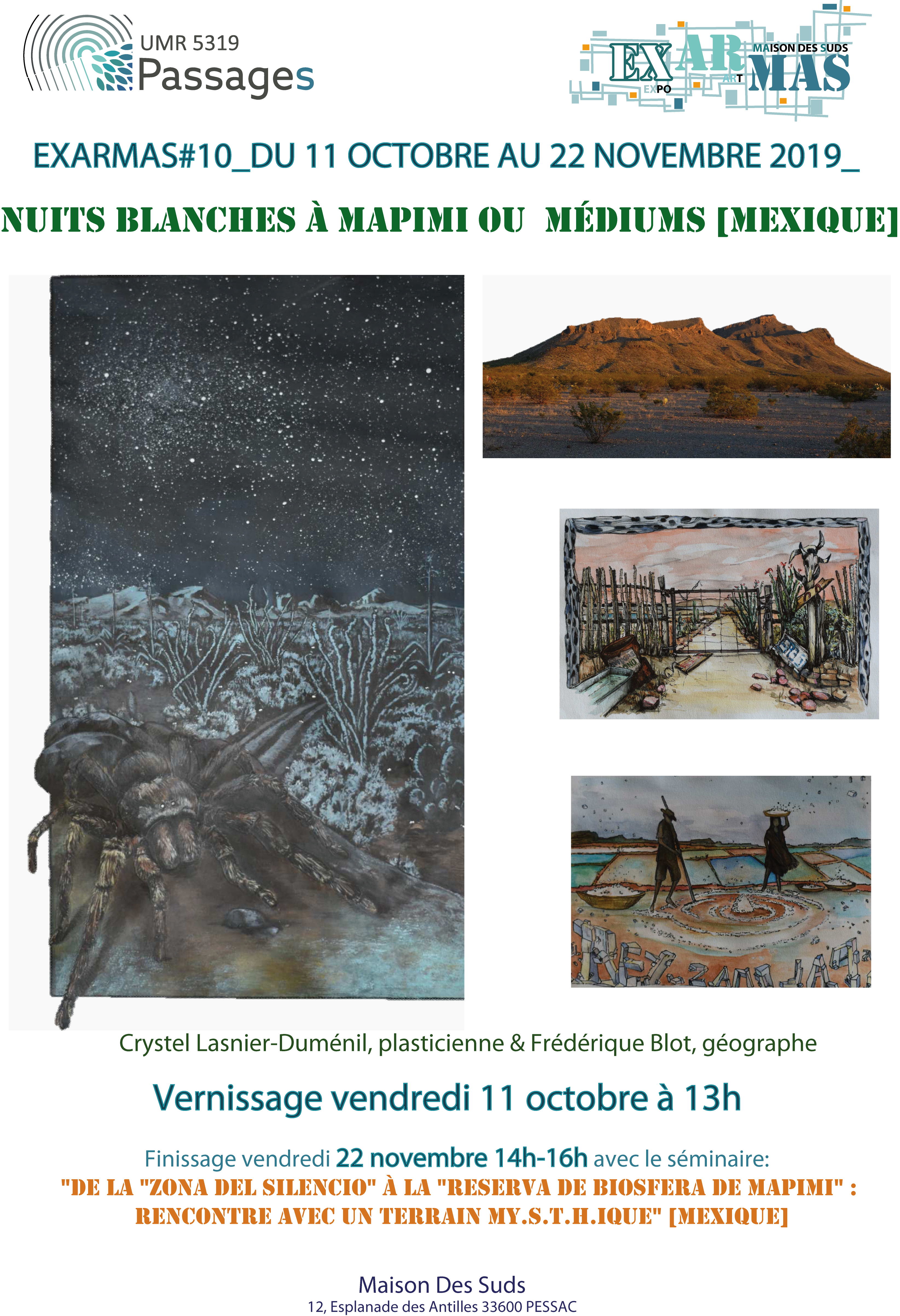 - Finissage : »De la « zona del silencio » à la « reserva de biosfera de Mapimi » : rencontre avec un terrain my.s.t.h.ique » [Mexique], séminaire. Animé par les exposantes.