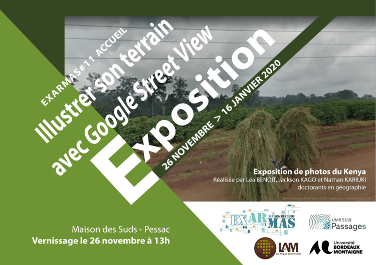 Pour sa onzième exposition, EXARMAS a réuni le travail de trois doctorants en géographie dirigés par Bernard CALAS au sein de l’UMR Les Afriques dans le Monde (LAM) : Léa BENOIT, Jackson KAGO et Nathan KARIUKI.