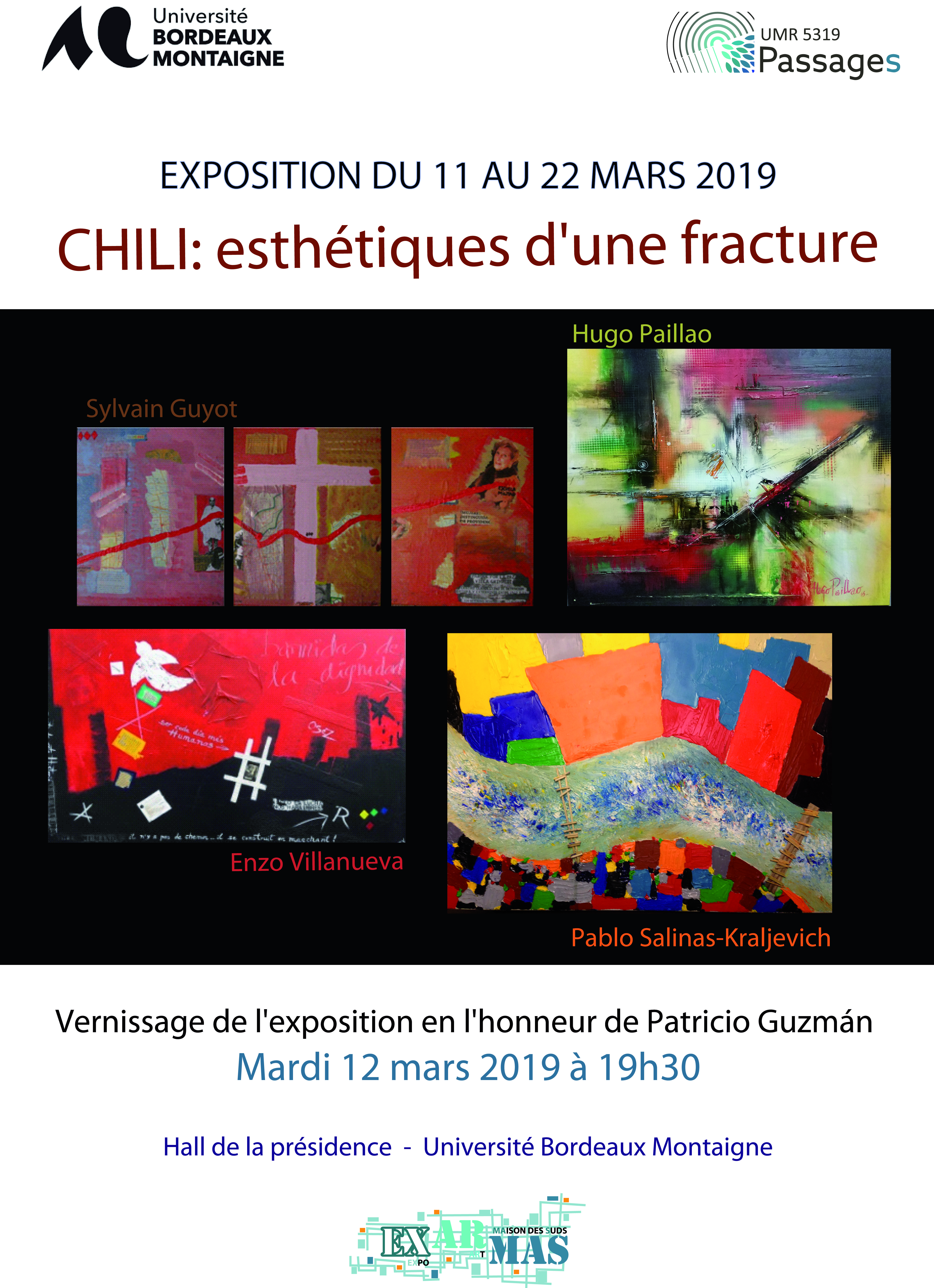 A l’occasion de la remise des insignes Docteur Honoris Causa de l’Université Bordeaux Montaigne à Patricio Guzmán – cinéaste et documentariste chilien, c’est un artiste engagé et un passeur infatigable de l’histoire et de la mémoire du Chili- , EXARMAS en association avec l’Université Bordeaux Montaigne présentent.